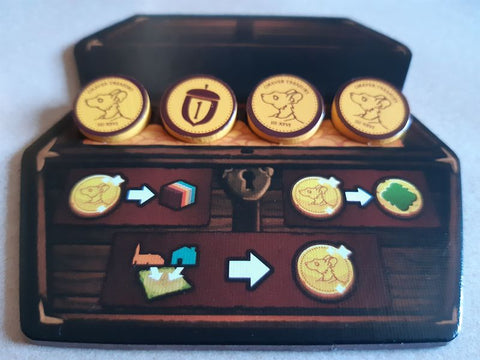 In the expansion Tiny Towns: Fortune, the creatures of the forest have found a way to trick each other into thinking shiny bits of metal have arbitrary value. It's very useful — so much so that you can use this thing called "money" to get other creatures to give you almost anything in return for the right number of shiny bits. If only earning money weren't so difficult!