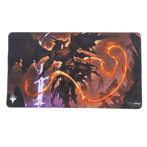 Playmats feature popular Magic: The Gathering artwork. Made with a soft fabric top to reduce damage to cards during play and a non-slip rubber backing to keep the playmat from shifting during use, playmats enhance the gameplay experience. With dimensions of approximately 24 in. x 13.5 in., a playmat also makes an excellent oversize mousepad for home or office.