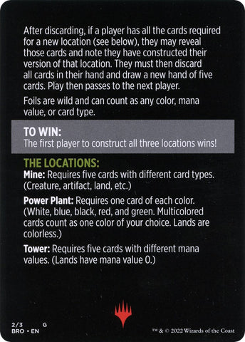 You've unearthed Urza's ancient blueprints for his Power Plant, Tower, and Mine! Race your fellow artificers to assemble all three iconic locations.