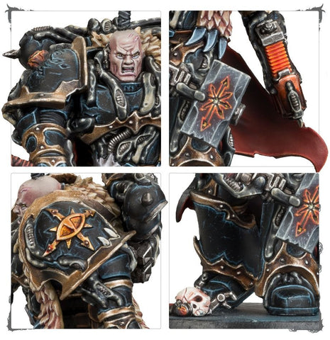 The Chaos Lord is multipart plastic kit. Previously only available in Warhammer Quest: Blackstone Fortress, the Chaos Lord is a single-posed, push-fit miniature. He is a potent HQ choice in a Chaos Space Marines army and makes for an excellent Warlord option to lead your forces. The Chaos Lord is equipped for close-ranged combat, with a powerful combination of plasma pistol and thunder hammer making him a great front-line fighter.