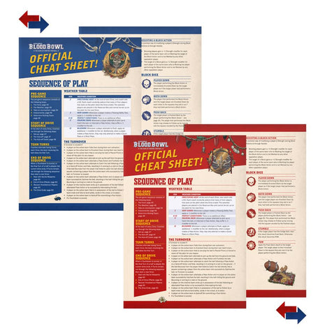 Contents: – 12 Red plastic Bretonnian team players: 6x Bretonnian Squire Linemen, 2x Knight Catchers, 2x Knight Throwers, and 2x Grail Knight Blitzers, plus coins, Re-roll markers, and extra balls – 14 Bone-coloured plastic Tomb Kings players: 2x Tomb Kings Blitzers, 2x Tomb Kings Throwers, 4x Tomb Guardians, 6x Skeleton Linemen, plus coins, Re-roll markers, and extra balls – 1x 200-page hardback Blood Bowl: The Official Rulebook – Third Season Edition! explaining the rules of the game, how to run a league and develop your team, plus Team Rosters and player profiles – 1x Double-sided fold-out pitch: one side has a grassy field design, the other astrogranite – 2x Double-sided card team Dugouts – 37x Plastic game tokens for keeping track of in-game status effects – 1x Plastic range ruler – 1x Plastic random direction template – 1x Plastic throw-in template – 7x Tomb Kings-themed dice – 7x Bretonnian-themed dice – 1x Bretonnian Team cheat sheet – 1x Tomb Kings Team cheat sheet – 1x Bretonnian Blood Bowl Team Transfer Sheet, featuring 320 high-quality waterslide transfers – 1x Tomb Kings Blood Bowl Team Transfer Sheet, featuring 298 high-quality waterslide transfers